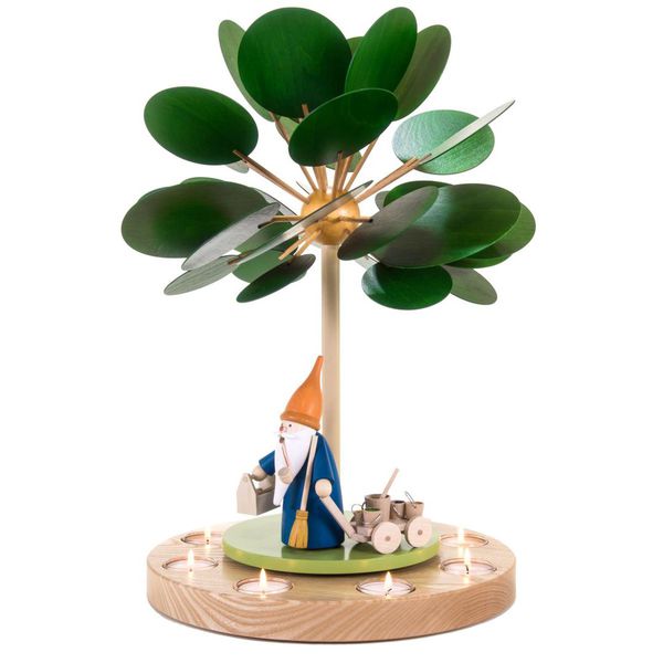 Wärmespiel und Teelichtpyramide mit Räucherfigur Schäferwichtel und Schafen.