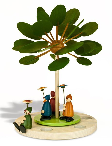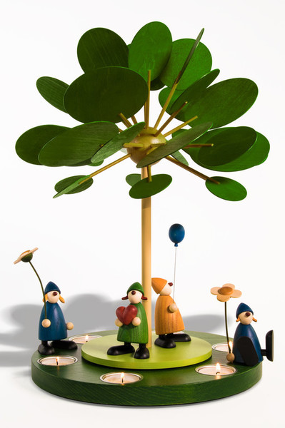 Ein sattes Grün beherrscht die Jahreszeit, alles brummt und blüht. Sonnenschein und Schmetterlinge fehlen natürlich auch nicht. Die lustigen Figuren aus der Manufaktur von Björn Köhler oder Räucherwichtel scharen sich um die sommerliche Szene.